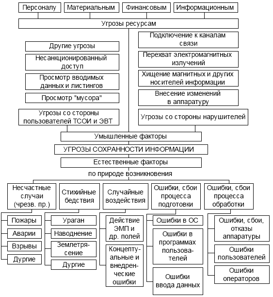– аварии и выход из строя аппаратуры, программного обеспечения, баз данных;
