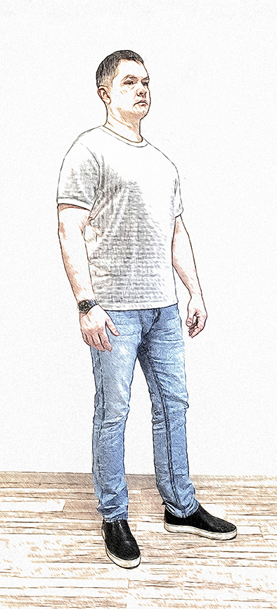 Как это отразил гений? Он интуитивно использовал явление «контрапост» – когда в каждом из сочленений тела есть какое-то отклонение от исходного статичного положения. Голова и шея чуть наклонены, колени в легком сгибе, кисти, локти, ось грудной клетки – всё в легком градусе смещения от статичной стойки «смирно».