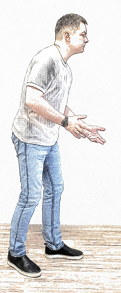 Завершённость позы свойственна уверенному человеку в состоянии комфорта. А долгое пребывание в незавершённой позе красноречиво говорит о его волнении, напряжённости. Например, стоять, словно в карауле, на двух напряжённых ногах или сидеть на краешке стула.
