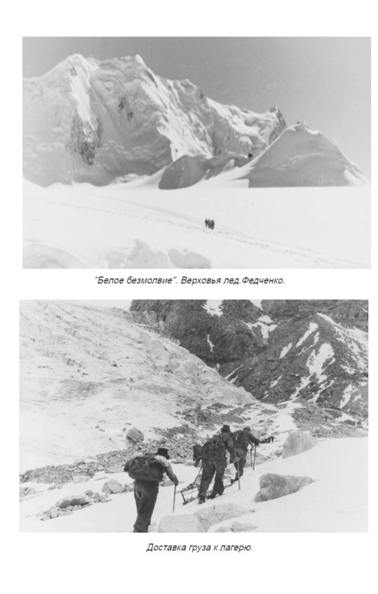 О том, как нам жилось во время нашего первого сбора в Безенги в 1958 г., о том, что нас окружало и чем были заполнены будни той экспедиции, подробно рассказано в моей книге «Мои друзья и горы», и я не буду здесь повторяться. Напомню только, что в горах надо быть всегда готовым к тому, что очень резко и неожиданно там может произойти переход от ощущения полноты и радости бытия к осознанию того, что случилась «черная беда». Именно такое и случилось у нас, когда в ночь на 28 июля в лагерь прибежала двойка с соседнего сбора, чтобы сообщить, что они приняли сигнал бедствия от нашей группы, что была на восхождении на вершину Шхара. Подойдя ближе к маршруту, они узнали, что сорвалась и разбилась двойка Спиридонов-Добрынин.