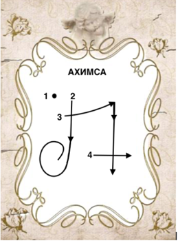Вхождение в пространство Ахимсы. Зажги свечу. Сядь удобно. Сделай 5 глубоких вдохов и выдохов. Почувствуй, как всё тело расслабляется – с каждым выдохом ты отпускаешь напряжение. Посмотри на символ Ахимса. Визуализируй его мягкое сияние – будто он распускается, как лотос, в твоём сердечном центре. Скажи: «Я вхожу в пространство тишины, где не звучит ни осуждение, ни страх, где я не атакую и не обороняюсь. Я есть Любовь. Я есть Ахимса.»