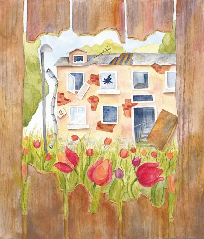 Разрушенный дом находится в конце нашего Солнечного переулка. Как говорит мама: «На краю нашего маленького мира». Вокруг дома – строительный забор. Его тоже давным-давно поставили, поэтому дырку в заборе найти было несложно. Её ещё до нас кто-то сделал. Видимо, другие любители искать клады уже побывали в доме. Пришлось пару досок от забора отломать, потому что я бы и в небольшую щель пролез, а дедушке было неудобно. За забором на заброшенной клумбе у дома цвели тюльпаны. Они заросли травой до самых бутонов, и это было очень красиво. Я бы остановился порисовать, если бы мы про клад сразу не договорились.