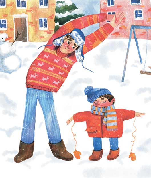 По утрам в выходные мы с папой в любую погоду делаем зарядку во дворе, даже когда снег. Это началось совсем недавно, когда мне исполнилось десять лет. Раньше мы делали зарядку дома, но там нам всё время мешала мама, и Муся под ногами путалась и норовила поцарапать.