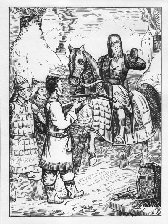 Тогда Кусэк вырвав у меня арбалет и развернувшись, выстрелил в упор в ближайшего «рыцаря», тот от неожиданности чуть было не слетел с седла от удара стрелы, но выучка степняка привыкшего с трех лет ездить верхом помогла ему удержаться.