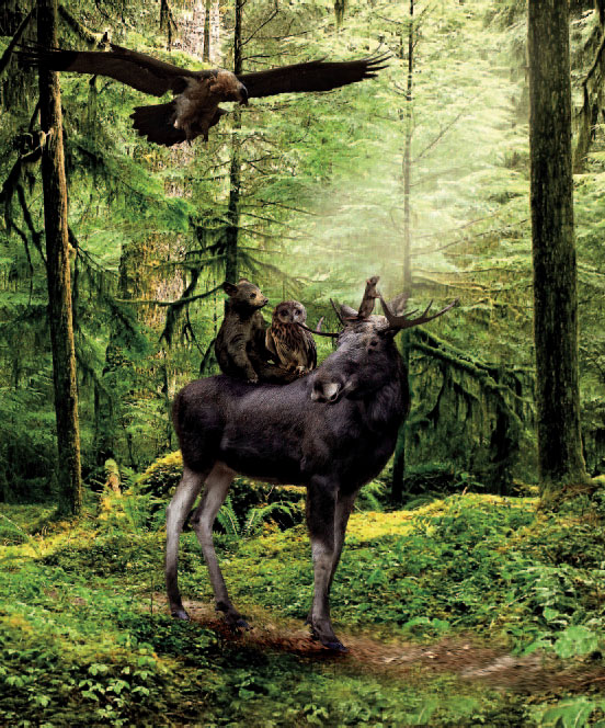 Он не удержался на могучей спине и кувырнулся вниз. Следом полетел и спрятавшийся за него мышонок. Оба шлепнулись в сочную весеннюю траву прямо перед лесным гигантом. Снизу лось показался им еще огромнее.