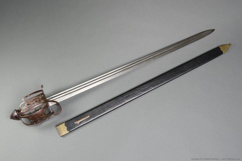 Я открыл крышку кейса и фальшиво присвистнул. Никогда не умел свистеть. В уложенном бордовой тканью футляре покоился прямой меч с корзинчатой гардой. Заточен только с одной стороны. Широкое лезвие немного сужается к острию. Гарда украшена гравировкой с изображениями паутины. Настоящее произведение искусства.