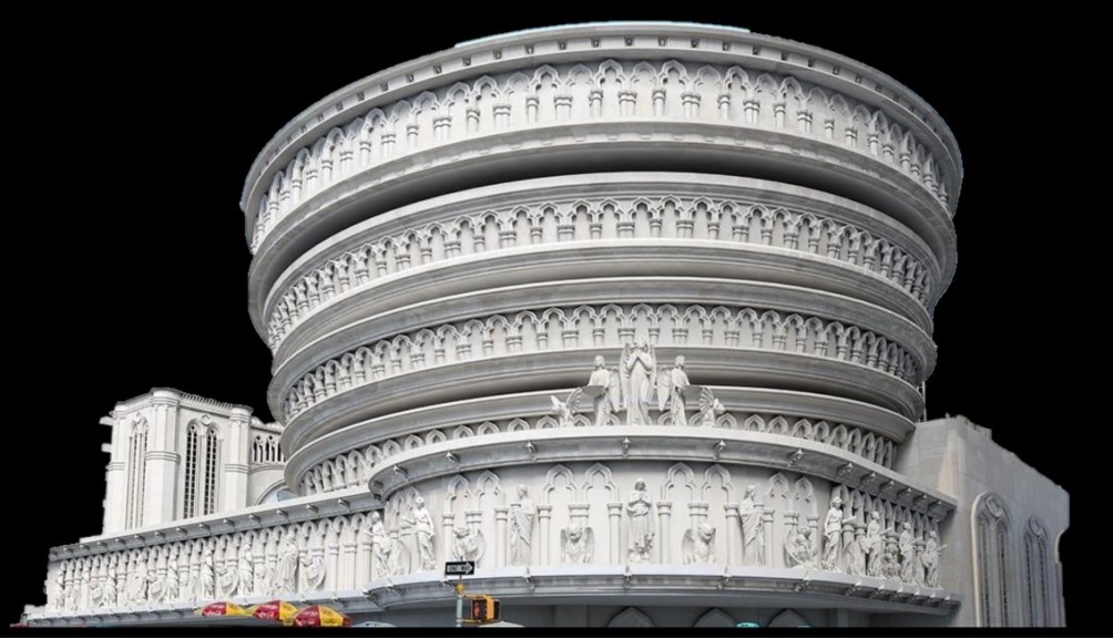 ⁂Главный аукцион Аскеша бросался в глаза. Над его созданием несомненно потрудился талантливый дизайнер, а внутри игры – архитектор. Из массивного прямоугольного основания здания выступали концентрические круги этажей, расширяющиеся к верху на манер воронки. Каждый уровень отделяла от смежных узкая выемка и украшали реалистичные горельефы неизвестных мне тёмных эльфов: воинов, жриц, правителей и магов – и огромное количество фальш-арок, опирающихся на колонны – по сути просто ниши, украшенные декоративными наличниками.