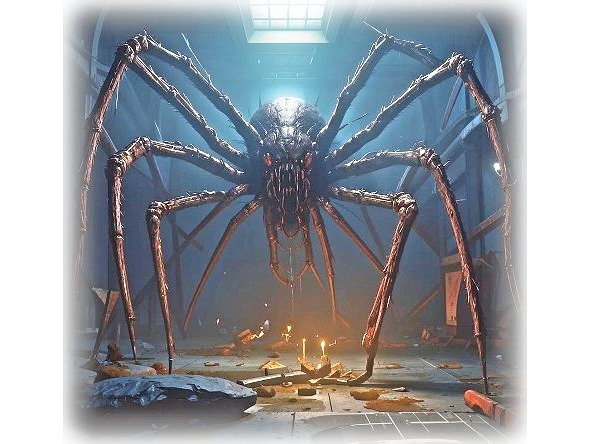 На Чистякова смотрел из каморки в четыре пары гляделок паук немыслимого, непредставимого здравым умом размера!