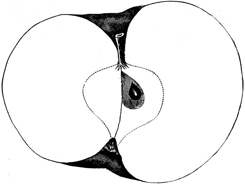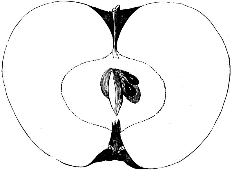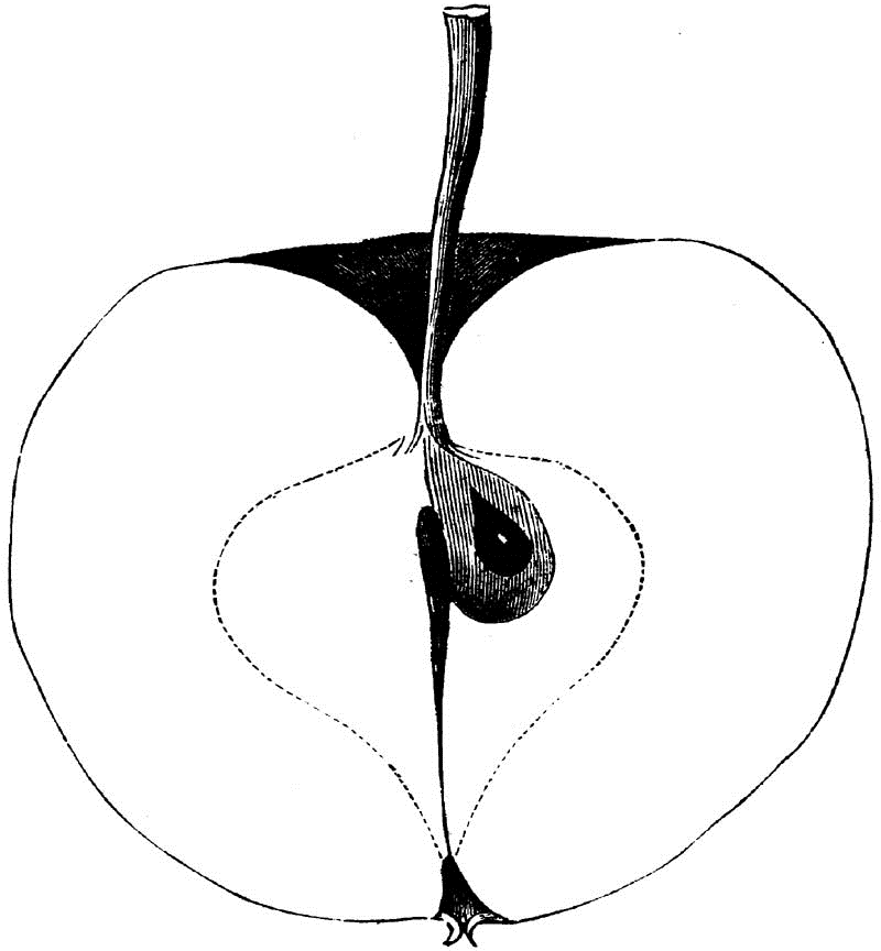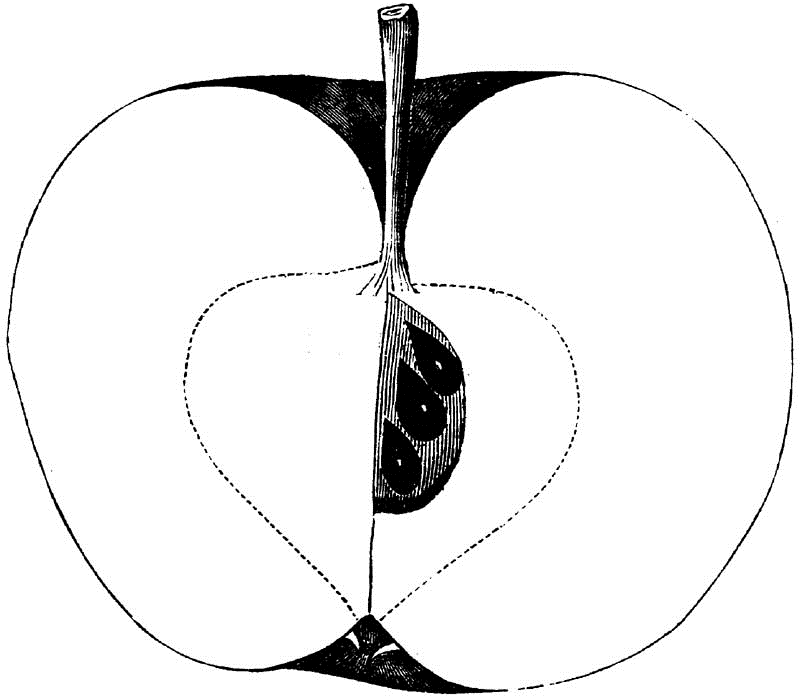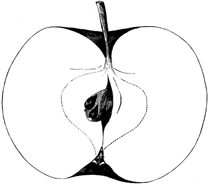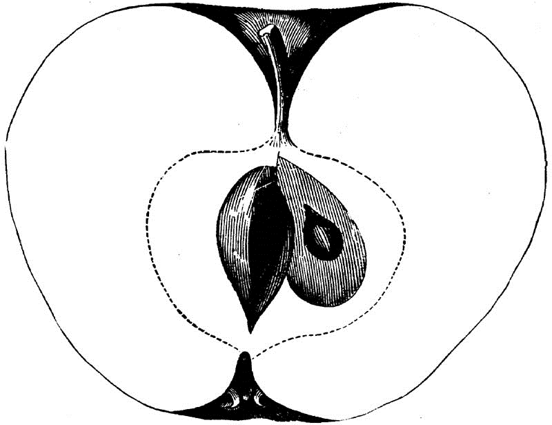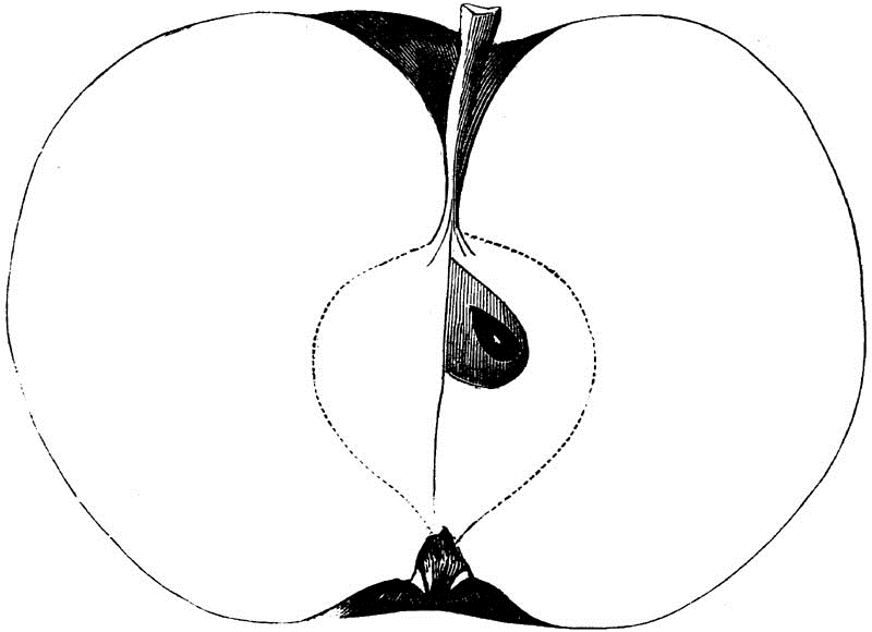 Core large, regular, closed; Axis very short; Seeds numerous, long, pointed; Flesh yellow, tender, fine-grained, juicy; Flavor mild sub-acid, rich, agreeable; Quality best, or nearly so; Use, table, kitchen, drying; Season, October to December.