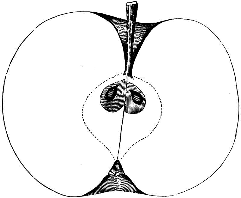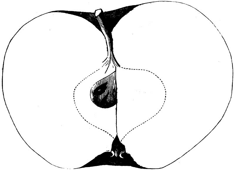 Core wide, round, open, meeting the eye; Seeds numerous, plump, brown; Flesh white, fine-grained, breaking, juicy; Flavor very sweet; Quality good to very good; Use, baking; Season, September and October.