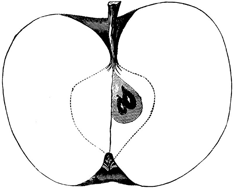 Scalloped GilliflowerThis is supposed to be an old European variety. Its peculiarly irregular form makes it quite a remarkable fruit. It is sometimes called Red Gilliflower; but that name is also very commonly applied to quite another fruit—the Red Winter Pearmain, described on a previous page, in Class II., Order I., Section 2., Sub-section 2.
