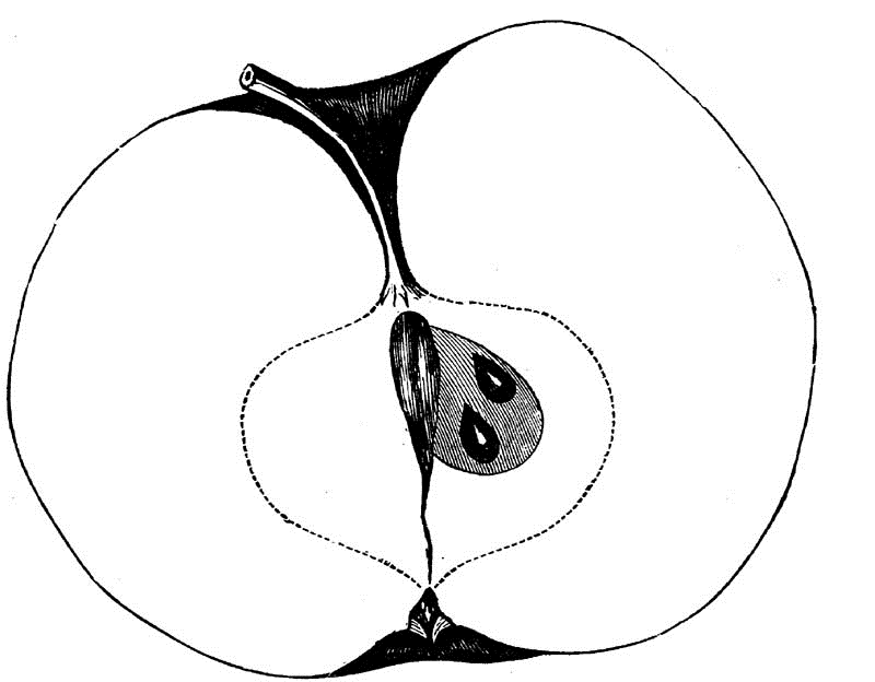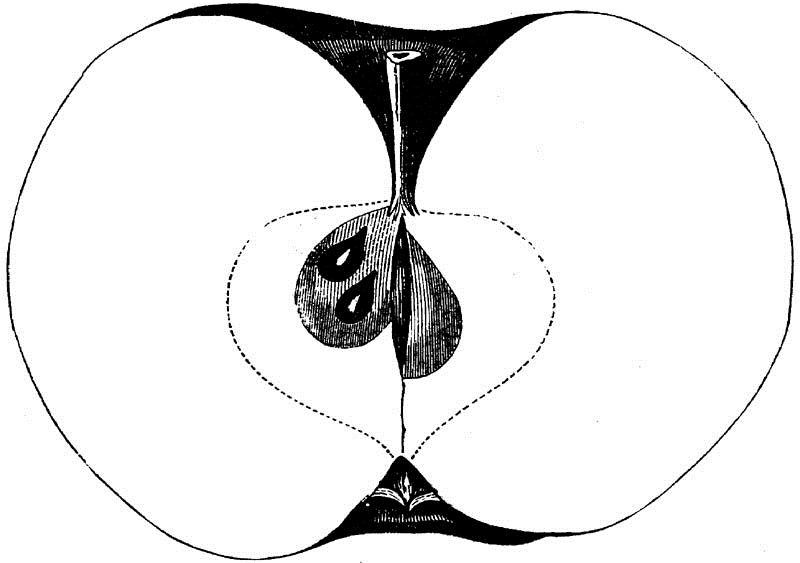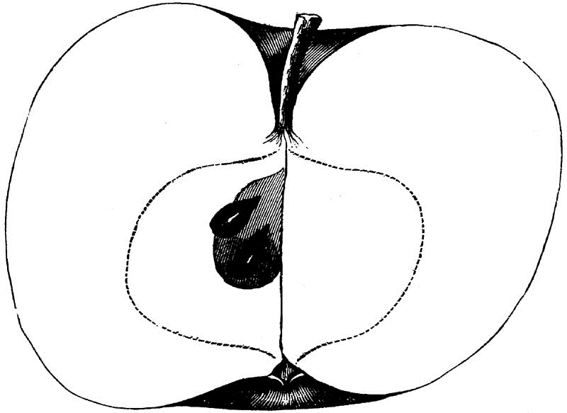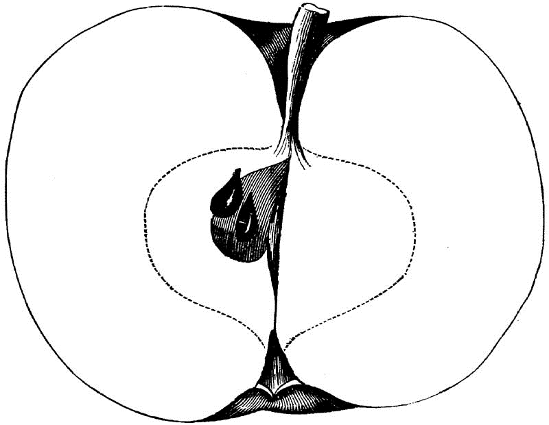 Core large, regular, closed, clasping; Seeds numerous, angular, long; Flesh pale yellow, breaking, fine-grained, juicy; Flavor sub-acid, aromatic; Quality good to best; Use, market, kitchen, table; Season, August, September.