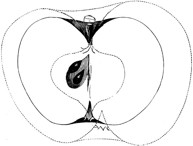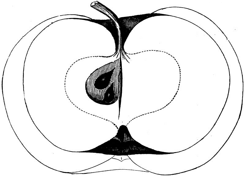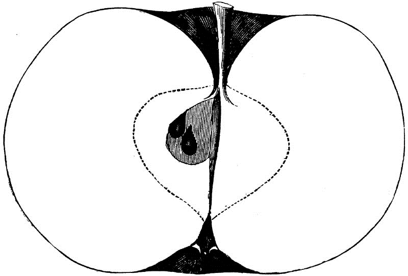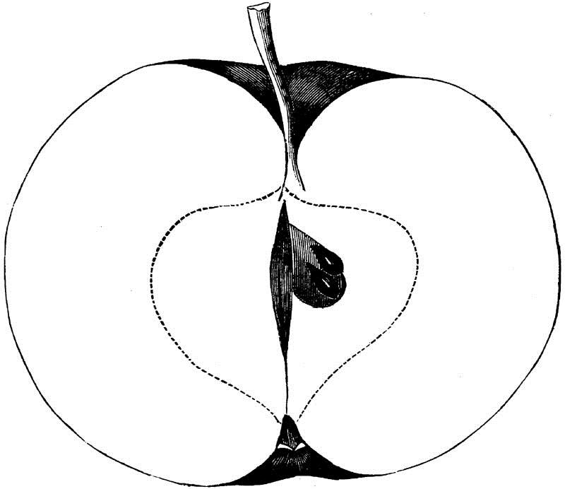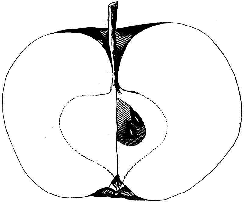 This southern apple, probably from Virginia, has been carried through all the Western States, where it is a great favorite, though there are some objectors, on account of its having shown signs of failure in certain situations. The fruit is singularly affected by change of soil and climate; thus, on the Ohio River, it is seen quite flat and regular, with a dull green russeted skin, becoming yellow and ruddy; in one part of the State of Indiana, on limestone, it is gibbous, round, often very large, and covered with a rich cinnamon russet, while on the coal measures, west of the center of the State, it is smaller, regular, and distinctly striped deep red on red, with very little russet. Specimens from Rochester, New York, have been shown with scarcely a trace of russet, and having the stripes as distinct and almost as beautiful as those of a Duchess of Oldenburgh, so that no southern or western man would have recognized it for his home favorite. The distinctive leather-cracking about the eye was present, however, in all.