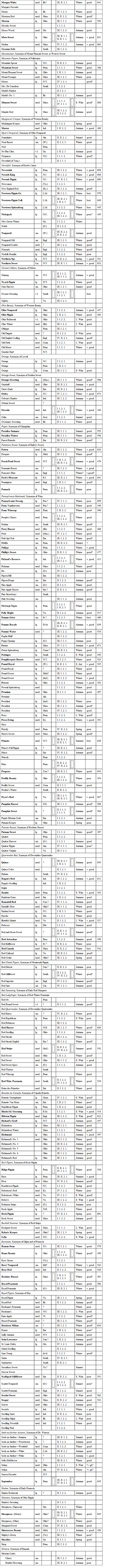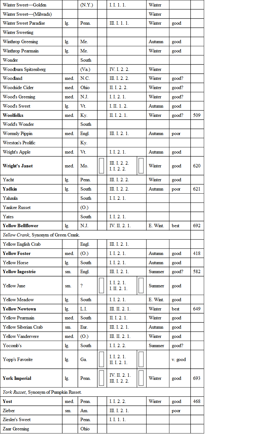 Sweet apples arranged in succession for stock. Those marked T. are also fine for the dessert; those marked B. are superior for baking: