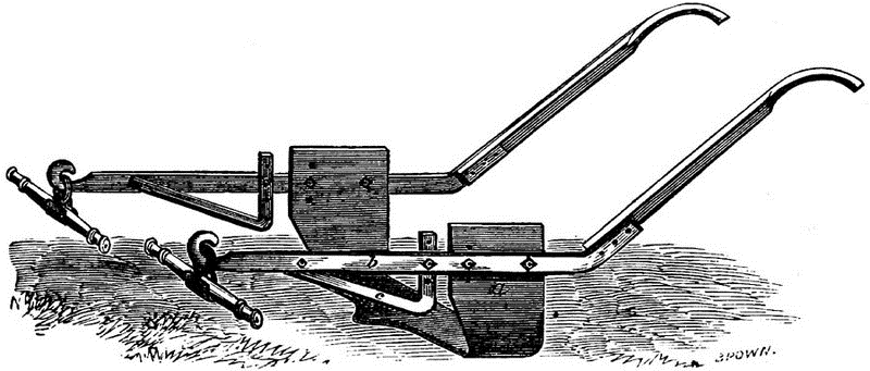 In the sandy loams of New Jersey, a similar tool is used for digging peach trees, which is drawn by a span of heavy horses that are attached to the two separate beams, one being on each side of the trees. This implement is found to be entirely satisfactory in its operations.