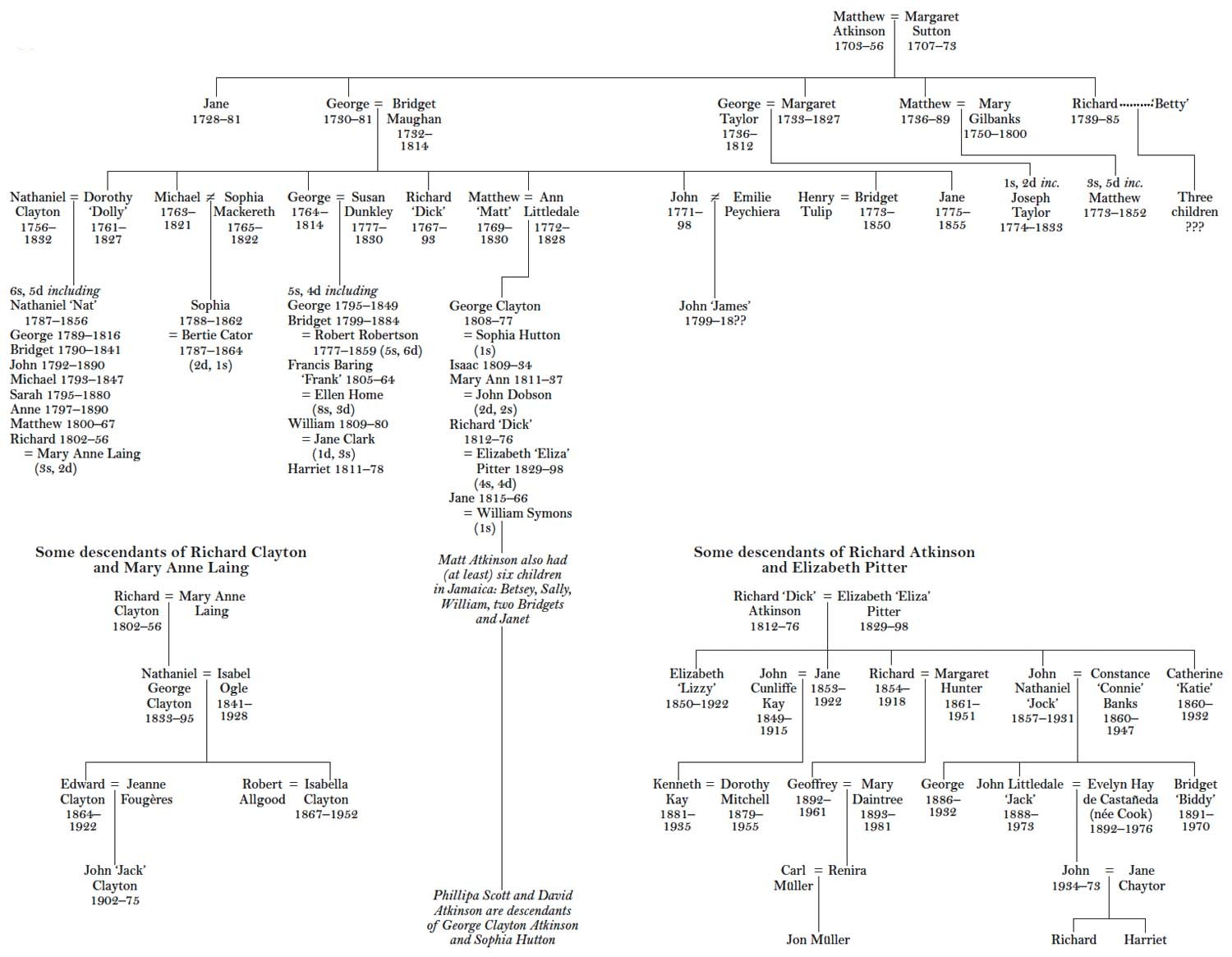 While my contemporaries looked to the future, and threw themselves into the all-consuming business of raising families, I turned towards the past, and decided that perhaps it was time I found out about those who had preceded me. One day, while rummaging around in my mother’s house, I discovered, gathering dust on top of a cupboard, a scruffy old cardboard box which contained several hundred letters tied up in tight bundles with pink legal ribbon. Most of them were addressed to a ‘Matthew Atkinson, Esq.’ at Temple Sowerby and dated from the first decades of the nineteenth century. At the same time I came across a family tree, mapped out on a roll of graph paper about twenty feet long, which traced the Atkinsons back to the late sixteenth century. It was in my father’s handwriting – I guessed he must have compiled it some time before his marriage, since right at the bottom I noticed he had added my mother’s name, and then mine and Harriet’s, in slightly different shades of blue-black ink. Looking over past generations, I soon realized how presumptuous I had been to assume that I would have children; while some branches of the family tree were ripe with offspring, others withered to nothing. Below the names of all those whose marriages had not borne fruit, my dad had written the sad little genealogical acronym ‘d.s.p.’ – decessit sine prole, the Latin for ‘died without issue’.
