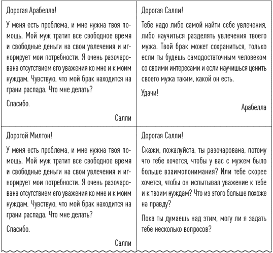 Прочитайте приведенные ниже письма; они даются для того, чтобы показать различия между коучингом и советами. Как вы думаете, какой из подходов позволит Салли быстрее и лучше добиться результатов?
