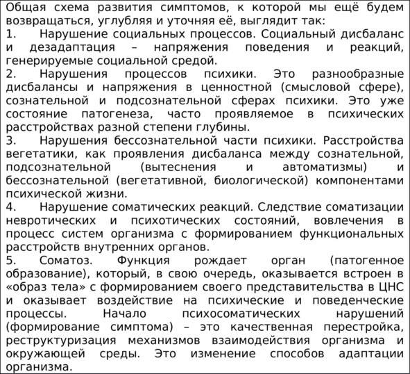 Фактически весь последующий текст посвящен рассмотрению процессов психосоматической нормы и патологии вместе с механизмами их обеспечивающими.