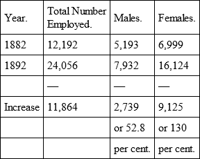 In 1882, there were to every 1,000 persons engaged in industry 176 women; in commerce and transportation, 190; in agriculture, 312.