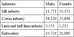 Industries in which female exceeded considerably the number of male labor, were mainly the following: