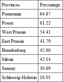 What disappears as peasant property usually goes into large estates. In 1885, in the province of Pomerania, 62 proprietors held 118 estates; in 1891, however, the same number of proprietors held 203 estates with an area of 147,139 hectares. Altogether, there were in the province of Pomerania, in 1891, 1,353 noble and bourgeois landlords, owning 2,258 estates with 1,247,201 hectares.172 The estates averaged 551 hectares in size.
