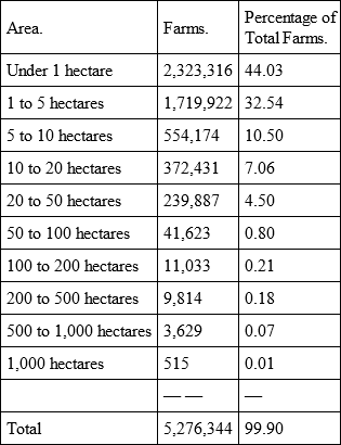 According to the agricultural statistics gathered in Germany on June 2, 1882, the farms fell into the following categories according to size: —