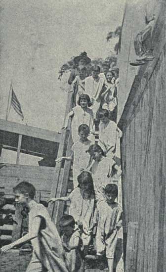 The method of the Fresh Air Fund was and is its great merit. Its plan, when first presented, was unique. There had been other and successful efforts before that to give the poor in their vile dwellings an outing in the dog days, but they took the form rather of organized charities than of this spontaneous outpouring of good-will and fellowship between brother and brother: “My house and my home are yours; come and see me!” The New York Times had conducted a series of free excursions, and three summers before Mr. Parsons preached his famous sermon, the Children’s Aid Society, that had battled for twenty years with the slum for the possession of the child, had established a Health Home down the Bay, to which it welcomed the children from its Industrial schools and the sick babies that were gathered in by its visiting physicians. This work has grown steadily in extent and importance with the new interest in the poor and their lives that has characterized our generation. To-day the Society conducts a Summer Home at Bath Beach where the girls are given a week’s vacation, and the boys a day’s outing; a cottage for crippled girls, and at Coney Island a Health Home for mothers with sick children. Sick and well, some ten thousand little ones were reached by them last year. The delight of a splash in the “big water” every day is the children’s at Bath. Two hundred at a time, the boys plunge in headlong and strike out manfully for the Jersey shore, thirteen miles away; but the recollection of the merry-go-round with the marvellous wooden beasts, the camera obscura, the scups, and the flying machine on shore, not to mention the promised lemonade and cake, makes them turn back before yet they have reached the guard-boat where they cease to touch bottom. The girls, less boisterous, but quite as happy, enjoy the sight of the windmill “where they make the wind that makes it so nice and cool,” the swings and the dinner, rarely forgetting, at first, after eating as much as they can possibly hold, to hide something away for their next meal, lest the unexampled abundance give out too soon. That it should last a whole week seems to them too unreasonable to risk.