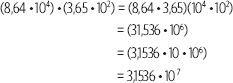 Se calcula el producto de los segundos en un día por la cantidad de días de un año, esto es, (8,64 • 104) • (3,65 • 102):