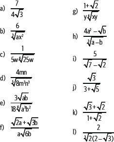1. En cada caso, multiplica por una expresión que permita simplificar las raíces. Justifica tu respuesta.