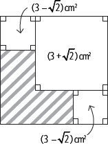 7. La siguiente figura está formada por un cuadrado dentro del cual se dibujaron otros tres cuadrados cuyas áreas se especifican en las figuras. Determina el área de la figura pintada.