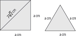 6. Determina el área de un triángulo equilátero cuyo lado tiene la misma medida que el lado de un cuadrado, como se muestra en la figura.