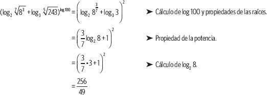 b) Si A = (log2 80 – log2 5) + (log3 135 – log3 5), ¿cuánto es A2?