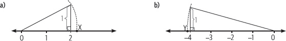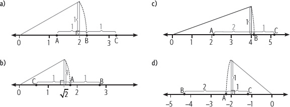 Sobre el número 1 se traza un segmento AB perpendicular que mida 1 unidad, luego se forma un triángulo uniendo el número 0 con B. Al aplicar el teorema de Pitágoras se tiene que la hipotenusa mide