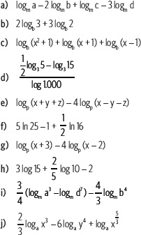 3. Reduce cada expresión. Para ello, aplica las propiedades del logaritmo.