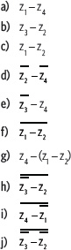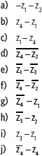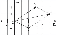 a) z1 = 3 – 2i, z2 = 1 + 2i; A = z1 + z2