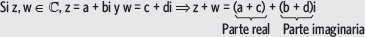 Para resolver una adición entre dos o más números complejos se suman, respectivamente, las partes reales y las partes imaginarias.