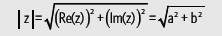 En el plano de Argand, el número complejo z = a + bi o z = (a, b), se representa utilizando un vector desde el origen del plano hasta el punto z. La longitud del vector corresponde al módulo del número complejo, que se anota por |z| y se calcula por: