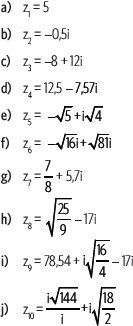 3. Escribe cada número en la forma z = a + bi según las condiciones dadas.