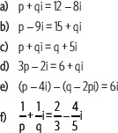 c) Si z = a – (3 – b)i, w = 12 + (5 – 4b)i y además w – z = –5 – 4i, ¿cuáles son los valores de a y b?