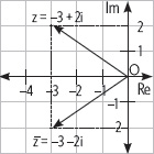 3. Representa en el plano el número complejo z = –3 + 2i, su conjugado y luego calcula su módulo.