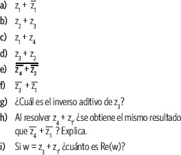 b) Si w – (–6 + 13i) = 8 – 5i, ¿cuál debe ser el conjugado del número complejo w?