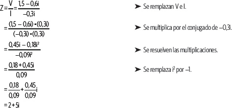 Respuesta: La impedancia es (2 + 5i) ohms.
