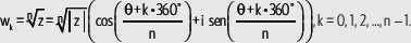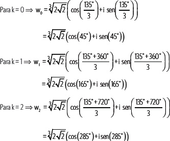 Con los valores de k se obtienen las 3 raíces, que en este caso son w0, w1 y w2.