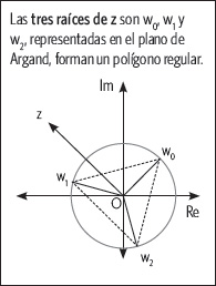 Al representarlas en el plano de Argand, se obtienen n puntos sobre una circunferencia con centro en el origen y radio
