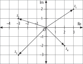 5. En el plano de Argand se han representado los números complejos z1, z2, z3 y z4. Considerando lo anterior, resuelve.