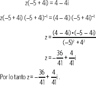 3. En la igualdad: z(–5 + 4i) = 4 – 4i, ¿cuál es el valor de z?