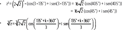• La potencia enésima es: zn = |z|n (cos(n • θ) + i sen(n • θ)), n