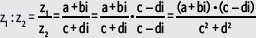 Para resolver una división entre z1 = a + bi, z2 = c + di es posible amplificar por el conjugado del denominador y determinar el resultado: