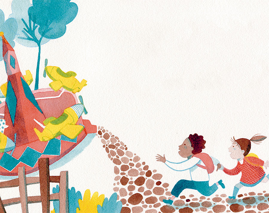 Lo que ellos no sabían en ese momento, es que la señora del kiosco, después de desatar el alto de revistas, se quedó pensando y fue al colegio de la esquina a decir que una niñita castaña con flequillo y moño acompañada de un niñito moreno de piernas largas, pelo corto y rizado se habían ido al parque de diversiones en bus. Tampoco ellos podían imaginar que del colegio llamaron a los papás. Y muchísimo menos podían suponer que los papás entraron al parque a la carrera justo cuando el hombre del carrusel hacía pasar a los que esperaban.