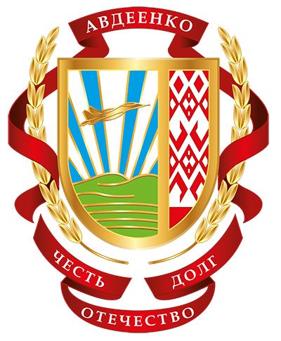 В основу Герба и всей Родословной положена семья моих родителей Авдеенко Парфена Трофимовича и Дарьи Степановны. Герб содержит 11 лучей по количеству лиц в семье. В центре щита зеленое поле олицетворяет наше происхождение из крестьян. Справа по национальности белорусский орнамент. По разрешению семейного совета над полем помещен самолет в связи с созданием Герба мной генерал-майором авиации ФСБ. Колосья и муаровая лента с фамилией и лозунгом традиционные атрибуты Герба.